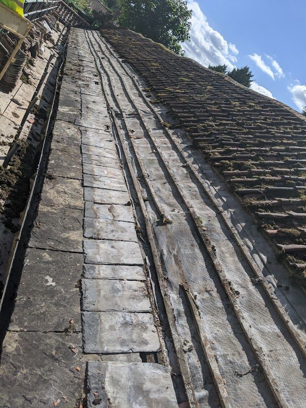 As part of a full refurbishment of the pub and restaurant roof repairs were a vital element of the project. The building is Grade II listed dating back to 1652 and steeped in history. Following flooding a full refurbishment was carried out. Lead Valleys restored and pointed, tiles replaced and underfelt repaired to various roof areas. The old storage barn was a full strip and restore. Our works included restoring ridges, stone slates, slates and old english pan tiles. In addition scaffolding was provided and managed as part of our contract package. Due to the size of the building track and trace of leaks to provide isolated repairs to keep within the clients budget were required where ever possible.